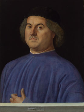 Во второй половине XV века венецианское государство испытывает серьёзные трудности, патрициат испытывает сильнейшее социальное расслоение, многие его представители уже не удовлетворяются официальной деятельностью и обращаются к гуманистической культуре. Именно в этой среде сложился новый идеал человека, который отразил Джованни Беллини в своих портретах. Этот идеал таков: «человек, ведущий независимый образ жизни, но готовый по законам своего сословия добровольно выполнять волю государства. Здесь словно примиряются два противоположных принципа в понимании человеческой личности: один исходит из гуманистического осознания индивидуальности, другой из подчинения этой индивидуальности жёстким нормам общественной жизни»[34]. Он портретирует представителей этого слоя, обладающей особой душевной утончённостью, причём с каждым последующим портретом Беллини образ человека становится всё сложнее, достигая наивысшей эмоциональной и интеллектуальной зрелости в портрете неизвестного из Лувра, где он запечатлел умного и остро чувствующего человека, живущего богатой духовной жизнью.