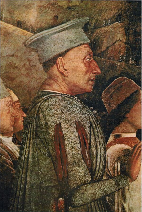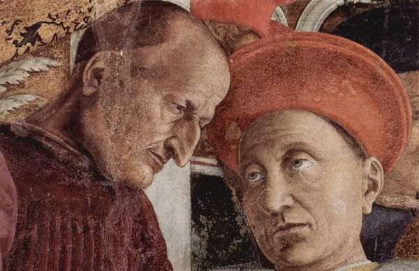 Во фресках Мантеньи и Микелоццо традиция кватроченто вовлекать реалистический портрет в монументальную композицию достигает своего апогея. Тут впервые с полным правом можно говорить о появлении нового типа группового портрета, от которого произойдет подобный жанр у Тициана и Рафаэля. В большинстве случаев термин «групповой портрет» относительно этого периода употребляется с оговорками — обычно это просто механическое объединение индивидуальных портретов родственников или членов одной корпорации, при том, что их внутренняя связь слабо раскрывалась художниками XV века, которые просто собирали свои фигуры в компактные группы и варьируя профили и трёхчетвертные повороты просто для живости. Каждый конкретный образ при этом воспринимался независимо, обособленно, поэтому такие группы легко дополнялись новыми фигурами при дописках или распадались на единичные портреты. Лишь полное вытеснение религиозного сюжета светским позволило объединить людей более органично какой-либо ситуацией, тоньше выявить их связь между собой. Эту ступень мы находим как раз в работах двух последних художников[18].