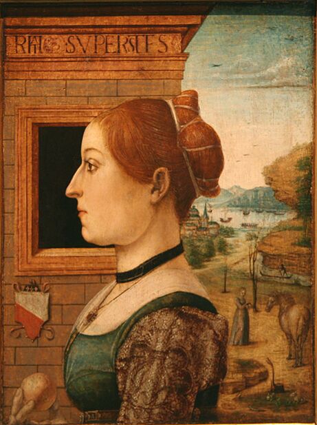 В ломбардском портрете конца XV-нач. XVI века старое и новое сосуществовало. Наиболее архаическую линию представляет Мастер Алтаря Сфорца (Фернандо де Льянос), написавший профильные донаторские изображения Лодовико Моро с семьей у подножия трона вполне леонардескной Богоматери, а также примитивные портреты Бернардино дей Конти. А произведения Больтраффио и особенно Андреа Соларио (который помимо Милана работал в Венеции) уже тесно связаны с новыми приемами портретирования, которые были характерны для всех художественных школ позднего кватроченто[30].