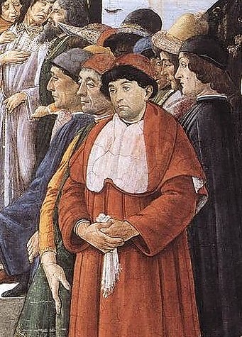 После сближения папы и Лоренцо Медичи в 1484 году группа флорентийских художников была приглашена в Рим, где вместе с умбрийскими мастерами в 1481—83 гг. украсили стены Сикстинской капеллы. Это были Боттичеслли, Перуджино, Гирландайо и Козимо Росселли, при участии своих помощников: Пинтуриккьо, Синьорелли, Бартоломео делла Гатта, Давид Гирландайо, Пьеро ди Козимо, Бьяджо д'Антонио. Эти фрески содержали множество портретных фигур (в сохранившихся 12 фресках насчитывается не менее сотни). Никак не связанные с библейским сюжетом, они откровенно даны как «вставные» группы, обычно по краям каждой композиции, будто выдвинутые из-за кулис. Большинство изображённых — родственники папы из семьи Делла Ровере и Риарио, а также члены курии и знатные союзники папы. В этих портретах виден накопленный опыт художников: любой портрет может быть вырезан из фрески и восприниматься как самостоятельная картина. У Боттичелли вышли прекрасные портреты в «Искушении Христа и очищение прокаженного» и в «Возмущении против законов Моисея» (среди фигур справа — предположительно Боттичелли, Алессандро Фарнезе и Помпонио Лето). Более архаичны по сравнению с портретами Боттичелли находящиеся там же работы Козимо Роселли, где портретные головы втиснуты между другими фигурами кое-как, напоминая Капеллу волхвов, причём, скорее всего, они написаны не им, а его помощниками.