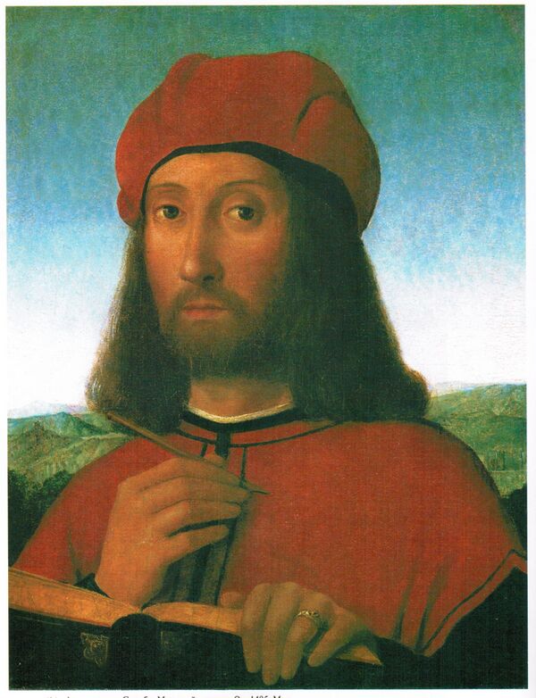 Именно такую, максимально расширенную пространственную композицию дает Перуджино в «Портрете Франческо дель Опере» (1494). Губы модели плотно сжаты, взгляд устремлен на зрителя, распушившиеся волосы окружают лицо, в руке бумажка со строками из Апокалипсиса. Фигура развернута фронтально и наполняет все поле картины. Руки опираются на парапет и придают композиции дополнительную устойчивость. Серьёзность лица оттеняет идиллический пейзаж вполне в умбрийской традиции, но при этом с бо́льшей воздушностью и торжественным покоем. Художник избегает ненужных подробностей.