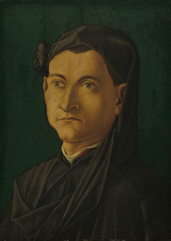 Мужской портрет (Филанджьери, Неаполь, не сохранился, ок 1476) — 3/4-й поворот, органичное включение в интерьер, является повторением нидерландского типа «портрета в угловом пространстве». Лицо освещается светом, проникшем сквозь окно в боковой стене слева. За спиной — второе окно с пейзажем. Бесспорно, лучший ранний портрет художника — «Неизвестный с медалью Козимо Медичи» (ок. 1475). Портрет написан темперой на доске и составляет с рамой одно целое. Модель прижимает двумя руками большую рельефную медаль из позолоченного стука. Образцом мог послужить портрет Мемлинга («Неизвестный с медалью», Антверпен). Модель передана на фоне пейзажа — долины реки Арно, но в отличие от аналогичного мотива у Поллайоло, он передан с упрощённым лаконизмом деталей. Картина сохраняет внешние отголоски стиля Поллайоло, тесно примыкает к новейшим тенденциям флорентийского портрета, но по живописному решению и образному строю обнаруживает иные устремления автора — композиция, хотя и спокойна, но имеет какую-то напряжённость (неловкий наклон головы, печальный взгляд, подчёркнутая демонстративность жеста, контраст красного и зелёного в одежде).