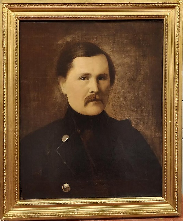 Картина представляет собой погрудное портретное изображение мужчины в положении три четверти влево, с направленным слева направо взглядом. Мужчина одет в чёрный сюртук с серебряными пуговицами и расстёгнутым воротом, на шее завязан чёрный платок. Волосы уложены на косой пробор. Композиция построена на контрасте тёмного фона и одежды, подчёркивающих черты лица модели.