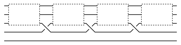 где , не покрывают всю группу . Тем не менее, если — центральная коса, то подобные интервалы образуют разбиение группы кос[4].