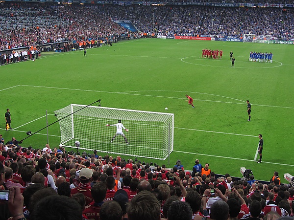 Серии пенальти применялись для определения победителя в Кубке европейских чемпионов и Кубке обладателей кубков с сезона 1970/71. 30 сентября 1970 года после ничьей по сумме двух матчей в первом раунде Кубка обладателей кубков Будапешт Хонвед выиграл первую серию пенальти 5:4 у Абердин[36], когда удар Джима Форреста попал в перекладину. 4 ноября 1970 года[37] первая серия пенальти в Кубке чемпионов прошла между Эвертон и Боруссия Мёнхенгладбах, победу одержал английский клуб 4:3[38].