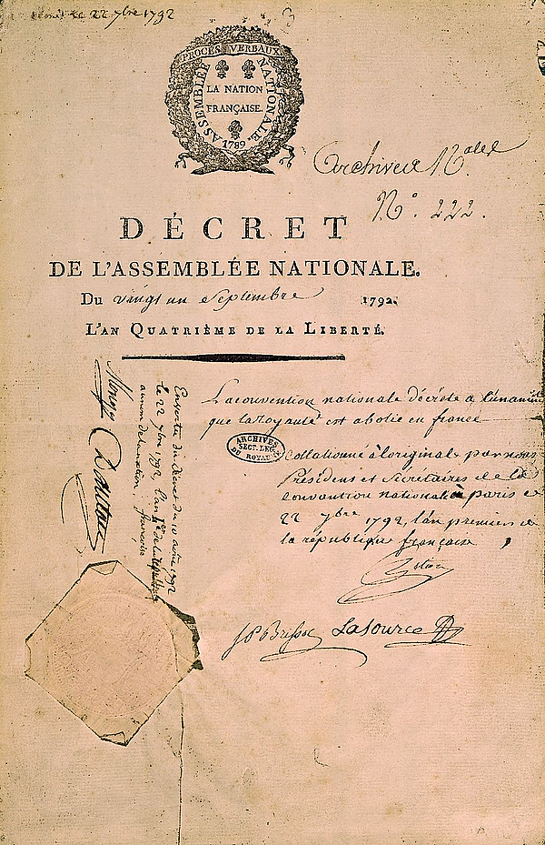 Когда депутат Парижа Жан-Мари Колло д’Эрбуа предложил отменить монархию, он не встретил какого-либо сопротивления; разве что Клод Базир, друг Жоржа Жака Дантона, пытался умерить энтузиазм собравшихся, рекомендуя перед любым решением провести обсуждение. Однако аббат Анри Грегуар, присягнувший епископ Блуа, решительно ответил на предложение о дискуссии:
