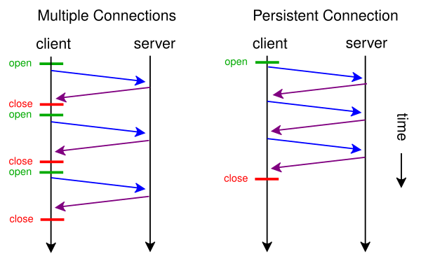 После этого соединение не разрывается, а остаётся открытым. Когда клиент отправляет ещё один запрос, он использует это же соединение. Так будет продолжаться до тех пор, пока клиент или сервер не решат, что обмен окончен, и одна из сторон завершит соединение.