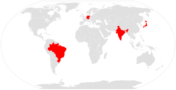 Были предложения о введении новых постоянных членов. В качестве кандидатов обычно упоминаются Бразилия, Германия, Индия и Япония. Они составляют группу из четырёх стран, известную как «Группа четырёх», которые взаимно поддерживают заявки друг друга на постоянные места.[16]