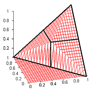 Геометрически, построение описывается как сжатие t-нормы T к отрезку [0,5; 1], а затем вращение на угол 2π/3 в двух направлениях вокруг прямой, соединяющей точки (0, 0, 1) и (1, 1, 0).