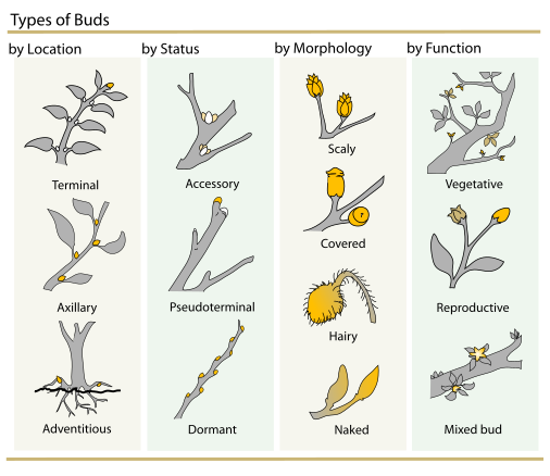 Если внутри почки заключены только зачатки цветков (одного или нескольких), то её называют цветочной почкой (генеративной). Цветочные почки противопоставляют листовым (вегетативным), заключающим в себе лишь зачатки стебля с листьями, и смешанным, в которых, кроме стебля и листьев, находятся зачатки цветов.