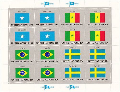 В 1980—1989 годах Почтовая администрация ООН предприняла выпуск марок с изображением национальных флагов всех государств мира. При этом ежегодно выходило по 16 марок, которые представляли собой детальную, выверенную и точную репродукцию флагов. Первая из таких ежегодных серий с изображением национальных флагов государств-членов ООН была продана в 1980 году тиражом каждой отдельной марки почти 3,5 миллионов экземпляров. Через восемь лет, в 1997—1999 годах, серия была возобновлена дополнительными ежегодными выпусками по восемь марок для флагов стран, недавно присоединившихся к ООН. В 2007 году появились ещё четыре марки из этой серии. Всего серия включает, таким образом, 188 марок и является одной из самых больших в мире. Планируется дальнейшее пополнение этой серии марками для государств — новых членов ООН.