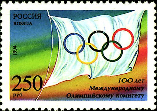 100 лет Международному Олимпийскому комитету. Флаг Международного Олимпийского комитета с Олимпийской эмблемой. | 250.00 руб. |