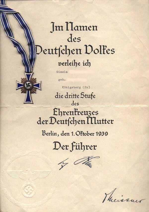 Почётный крест немецкой матери (нем. Ehrenkreuz der deutschen Mutter) — награда нацистской Германии, учреждённая Адольфом Гитлером 16 декабря 1938 года.
