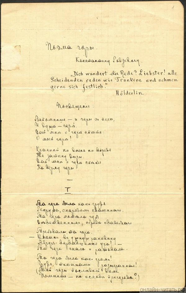 Не помню, кто мне её дал, но когда я прочёл «Поэму Горы», то всё стало на свои места. И с тех пор ничего из того, что я читал по-русски, на меня не производило того впечатления, какое произвела Марина.