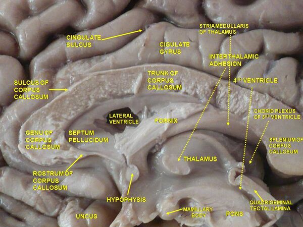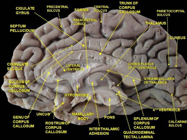 Японские нейрофизиологи (Фудзивара и другие) провели эксперимент, в котором исследовали корреляцию между размером передней части поясной извилины у людей с шизофренией и функционированием их социального познания, психопатологией и эмоциями по сравнению с контрольной группой здоровых людей. Было обнаружено, что меньший размер передней части поясной извилины соответствовал худшим социальным навыкам и более высоким уровням психопатологии у больных шизофренией. У больных шизофренией передняя поясная извилина была билатерально меньше по сравнению с людьми из контрольной группы[11]. Кроме того, у больных шизофренией наблюдается меньший объём гиппокампа[12] и полосатого тела[13]. При том, что у больных шизофренией меньше объём серого вещества, у них наблюдается больший объём боковых и третьего желудочков головного мозга[14].