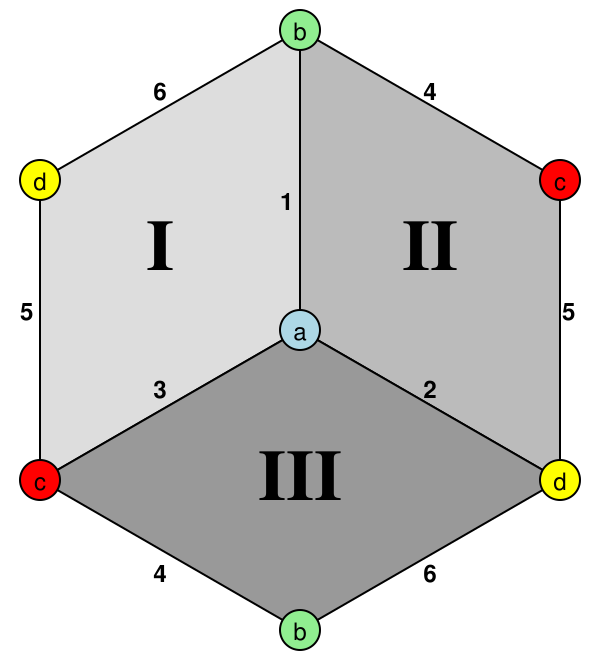 С точки зрения теории графов карта есть кубический граф с рёбрами, выкрашенными в синий, жёлтый и красный цвета так, что связен, каждая вершина инцидентна с рёбрами каждого цвета, а циклы рёбер, не окрашенных в жёлтый цвет, имеют длину 4. Заметим, что является плоским графом или закодированной графом картой (англ. graph-encoded map, GEM) карты, определёнными на множестве флагов в качестве вершин и не являющимися остовом G=(V,E) карты. В общем случае .