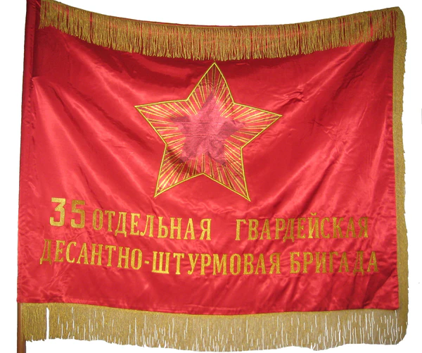 - 35-ші жеке гвардиялық десанттық-шабуылдаушы бригадасы — 35-я отдельная гвардейская десантно-штурмовая бригада (смотреть Боевое знамя на фото)