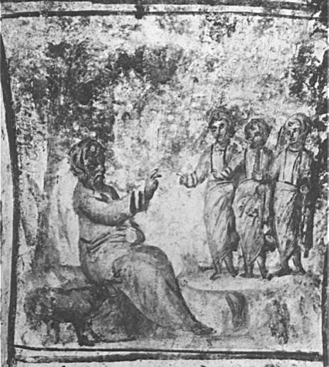 Наиболее часто используется сюжет так называемого «гостеприимства (греч. φιλοξενία) Авраама» — явления ему трех ангелов: