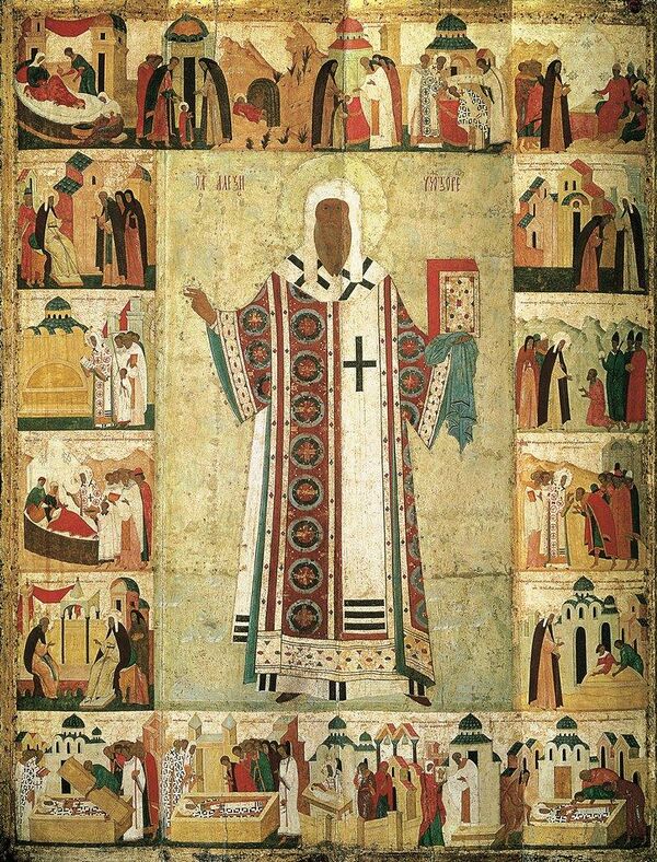 В 1354 году митрополитом Руси стал Алексий. Он был регентом при малолетнем Дмитрии Донском и в дальнейшем всячески поддерживал московского князя в борьбе против ордынцев и деле объединения русских земель[10]. По просьбе святителя Алексия Владимир был снова утверждён в качестве местопребывания митрополитов всея Руси с сохранением за ними Киева в качестве первого престола; при этом резиденция митрополита располагалась в Москве[11].