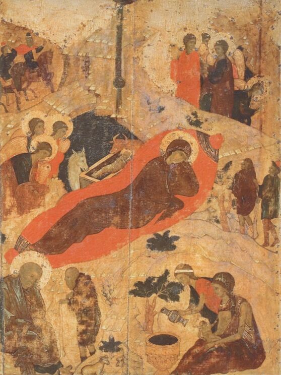 В Рождестве Бог воспринял человеческую ипостась, чтобы затем быть принесённым в жертву во искупление человеческих грехов. Именно поэтому на иконах Рождества колыбель похожа на гроб, а пелёнки — на погребальные пелены: Бог пришёл в мир, чтобы умереть и воскреснуть[17].