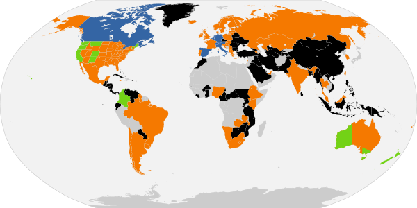 По состоянию на июль 2021 года отдельные виды добровольной эвтаназии являются законными в некоторых штатах Австралии,[14] Бельгии,[15] Колумбии,[16] Люксембурге,[17] Нидерландах,[15] Швейцарии,[15] Испании[18] и некоторых провинциях Канады.[19]