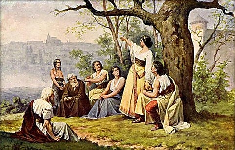 В VIII веке существовала легендарная фигура Либуше и ее мужа Пршемысла, основавших династию Пржемысловичей. Согласно легенде, Либуше предсказал основание великого города под названием Прага на скалистом утесе над рекой Влтавой.[12]