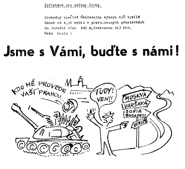Благодаря подпольным радиостанциям, оповестившим о вводе войск, и листовкам на улицы Чехословакии были выведены люди. Они сооружали баррикады на пути продвижения танковых колонн, распространяли листовки с обращениями к населению выйти на улицы. Неоднократно имели место нападения на советских военнослужащих, в том числе вооружённые, — в частности, танки и бронетехнику гражданские лица забрасывали бутылками с зажигательной смесью.