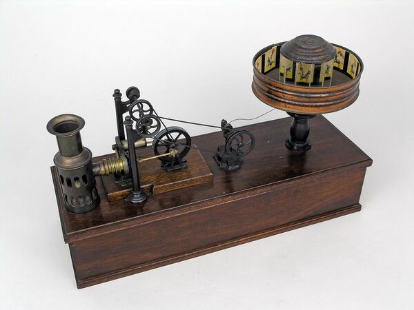 Прибор состоит из открытого цилиндра с высотой стенок около 10 сантиметров. На внутренней стороне цилиндра размещена полоса с 8 или 12 миниатюрами. В центре цилиндра размещена зеркальная призма, число боковых сторон которой соответствует числу миниатюр. Внутренний радиус призмы составляет половину радиуса цилиндра. При этом каждая миниатюра отражается в соответствующей грани призмы таким образом, что отклонение грани при вращении компенсирует смещение изображения, обеспечивая его неподвижность между сменами. За счёт такой оптической компенсации при вращении цилиндра возникает анимационный эффект плавного движения.