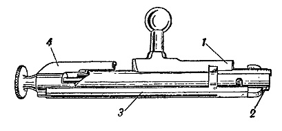 - 3-е положение (предохранитель установлен в положении налево — ударник разблокирован, подвижный затвор — винтовка готова к стрельбе
