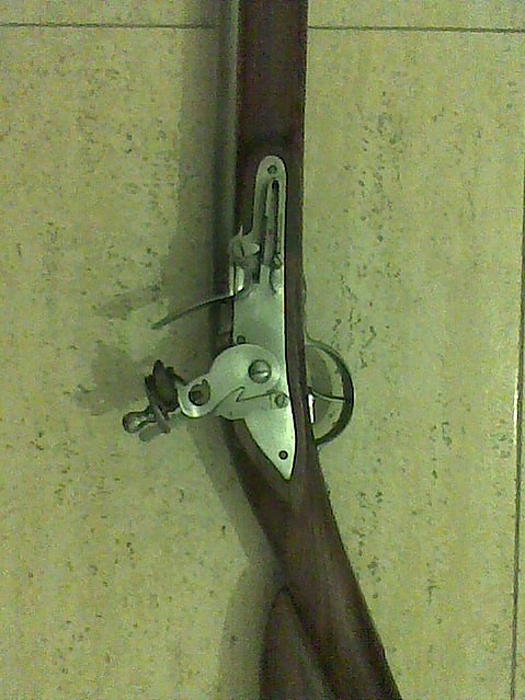 В винтовке Ли-Энфилд предохранитель имеет вид поворотного рычажка, укреплённый слева ствольной коробки.