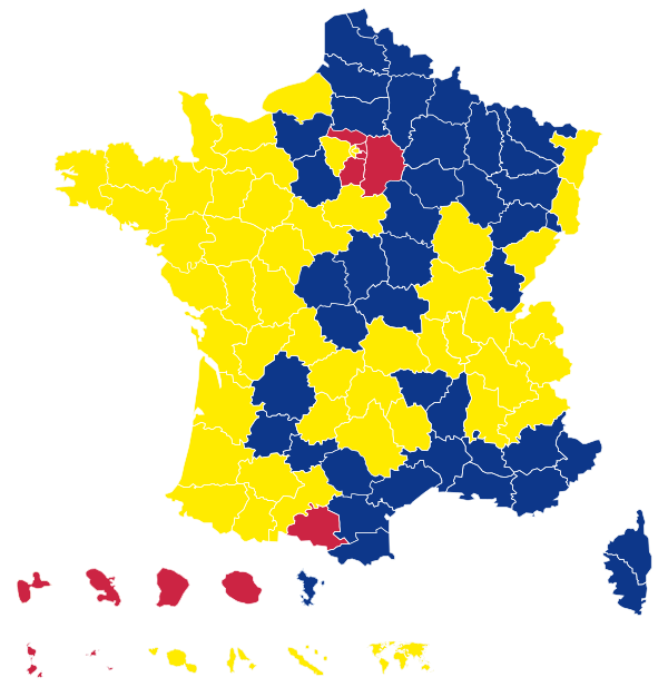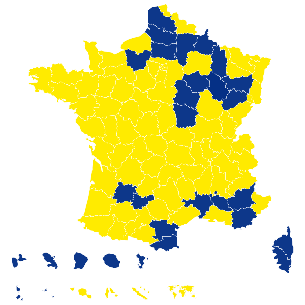 | Карта результатов по департаментам и регионам в первом туре | |||
