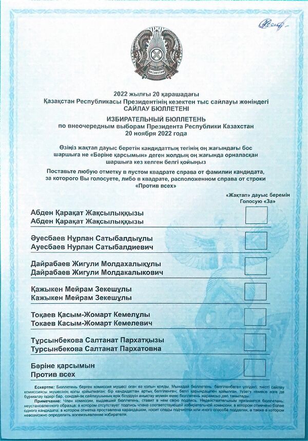 Президент Республики Казахстан | Народная коалиция политических партий и общественных объединений «За реформы Токаева» | Зарегистрирован | 8 октября 2022[42] | 12 октября 2022[43] |