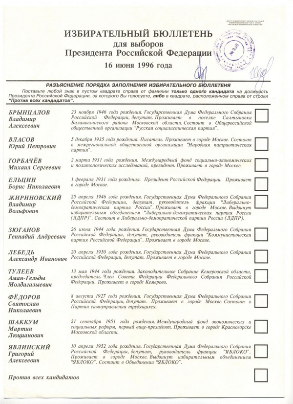 | переизбрание Бориса Ельцина на пост президента России | |||