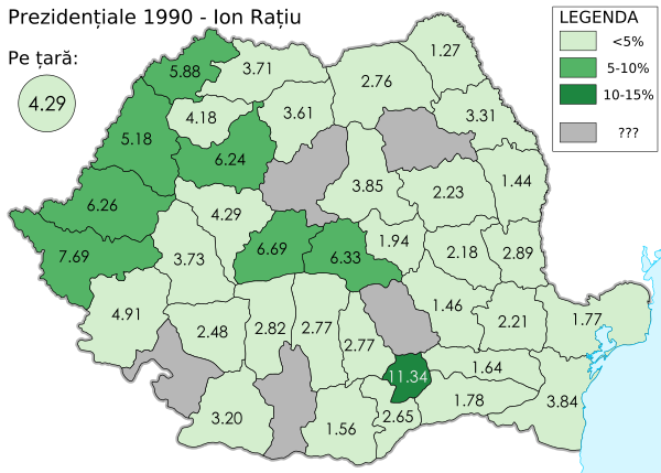 | Ион Рациу | Национал-цэрэнистская христианско-демократическая партия | 617 007 | 4,29 % |