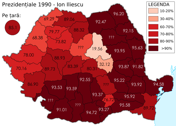| Ион Илиеску | Фронт национального спасения | 12 232 498 | 85,07 % |
