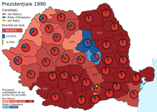 Президентом на 2 года был избран председатель Фронта национального спасения Ион Илиеску, набрав более 85 % голосов. Его основной соперник, лидер восстановленной Национально-либеральной партии Раду Кэмпеану, получил 10,64 % голосов.