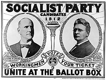 Социалистическая партия Америки была очень расколотой коалицией местных партий, базирующихся в промышленных городах, обычно в этнических общинах, особенно немецких и финских. Она также имела некоторую поддержку в старых популистских сельских и шахтёрских районах на западе, особенно в Оклахоме. К 1912 году партия имела более тысячи местных избранных должностных лиц в 33 штатах и 160 городах, особенно на Среднем Западе. Юджин В. Дебс баллотировался на пост президента в 1900 , 1904 и 1908 годах, прежде всего, для поощрения местных усилий, и он сделал это снова в 1912 году и из тюрьмы в 1920 году.