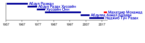 3 апреля 2009 | 10 мая 2018 | Объединённая малайская национальная организация | 2013 | Власть перешла к другой партии | |
