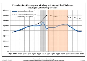 В 1898 году в городе проживало около 20 000 жителей, функционировали два железоделательных завода и один сахарный, сигарная фабрика, железнодорожная станция Пренцлау[9]. В 1909 году в городе проживало около 21 000 жителей[3], а в 1916 году — 21 386[10].