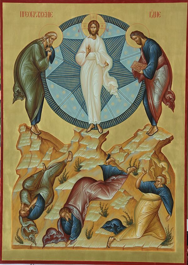Спустя шесть дней Он взял троих ближайших учеников Петра, Иакова и Иоанна и поднялся вместе с ними на гору помолиться. Там во время молитвы Он «преобразился пред ними: и просияло лице Его, как солнце, одежды же Его сделались белыми, как свет» (Мф.17:2).