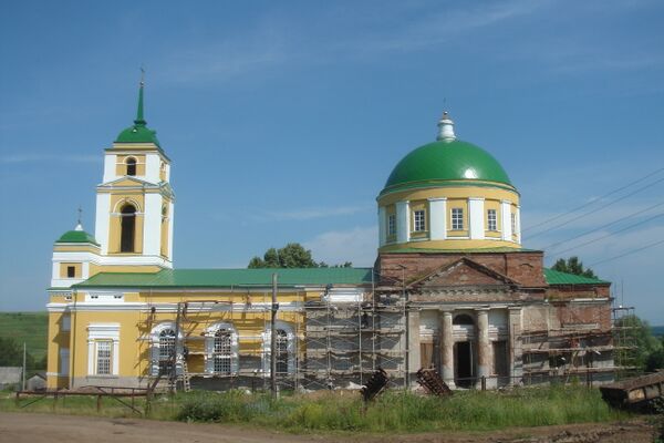 К 1773 году деревянная церковь обветшала и Казанская духовная консистория выдала храмоздатную грамоту на строительство каменной церкви с тем же названием и приделом в честь Казанской иконы Божией Матери. Храм построен в 1782 году и освящён во имя Преображения Господня 18 января 1795 года, а придел в честь Казанской иконы Божией Матери — 18 января 1785 года[1].