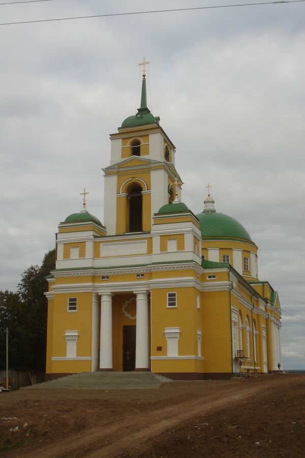 После Ижевского пожара 1810 года, заводской архитектор Семён Емельянович Дудин выполнил проект нового ижевского храма. Но в Санкт-Петербурге посчитали проект излишне затратным для провинциального посёлка и предложили строить храм попроще. Но спустя всего три года после отказа для Ижевского завода, в 1814 году осуществление проекта началось в селе Мазунино[2].