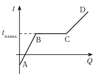 График зависимости температуры кристаллического тела от подведённого количества теплоты может быть представлен следующим образом: