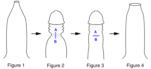 Препуциопластика может быть осуществлена посредством Z-пластики, также используемой в реконструктивной хирургии.