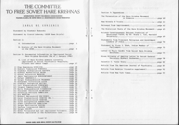 - Persecution of Krishna Worshippers // The Samizdat Bulletin. — 1988. — № 177. — P. 14—15.