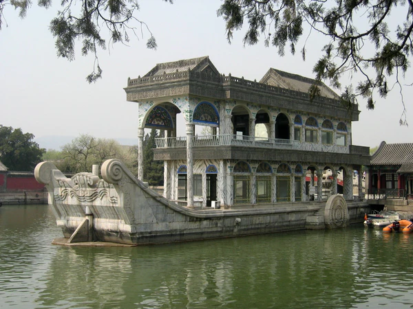 Один из исторических примеров претекста — действия китайского правительства в 1880-х годах, когда сбор средств был организован под предлогом модернизации военно-морского флота. Однако эти средства были переориентированы на ремонт двухэтажного павильона в форме корабля, который изначально был возведён для матери императора Цяньлуна. Данный претекст и знаменитая «Мраморная ладья» тесно ассоциируются с императрицей Цыси. Эта архитектурная эксцентричность, ныне известная как Мраморная ладья (Шифан), «пришвартована» на озере Куньминху в саду, названном императрицей «Садом взращивания гармонии» (Ихэюань)[5].