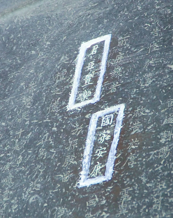 - «Табличка над Даибуцу-дэном и колокол содержали надпись Kokka ankō (означающую "страна и дом, мир и спокойствие"), и Токугава Иэясу счёл это оскорблением, заявив, что это проклятие ему, поскольку иероглиф 安 (ан, "мир") был помещён между двумя иероглифами, составляющими его собственное имя 家康 ("ка-кō", "дом–спокойствие") [возможно, подразумевая, что мир невозможен при жизни Иэясу]... Этот случай с надписью был, разумеется, всего лишь претекстом, но Иэясу понимал, что не сможет полностью укрепить свою власть, пока жив Хидэёри. Несмотря на многочисленные извинения, принесённые вассалом Хидэёри Катагири Кацумото в резиденции Иэясу (замок Сунпу), Иэясу отказывался идти на примирение.»[10][7];