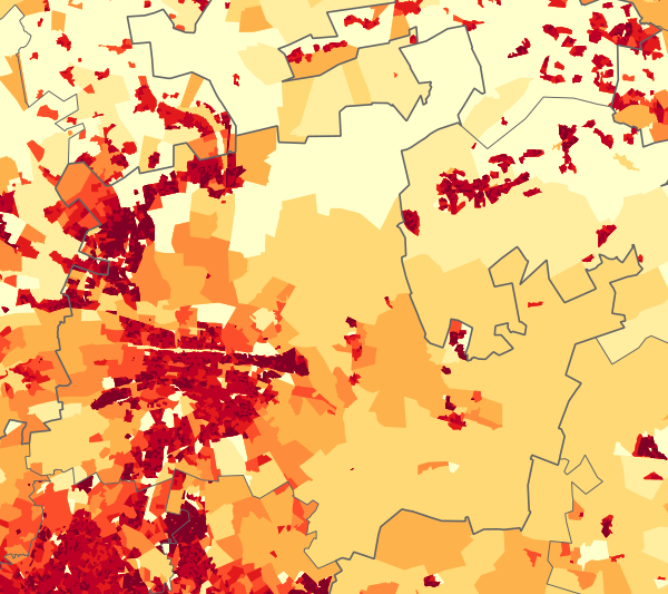 В Претории, несмотря на довольно быстрый рост численности африканского среднего класса, большинство по-прежнему составляет белое население (52,45 % — 2011)[1], хотя в таких пригородах как Сосганване и Аттеридгевилль практически всё население составляют африканцы.
