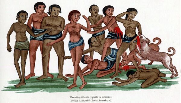 В буддийской схеме реинкарнации преты — это низший сегмент Колеса Жизни[4], на множестве уровней которого реинкарнация происходит в соответствии с единой кармой. Преты занимают своего рода Чистилище, предназначенное для людей, которые испортили свою карму завистью, отказом давать милостыню, жадностью и т. п. Преты, по-видимому, антропоморфны, так как имеют горло толщиной с игольное ушко и брюхо размером с гору, из-за чего преты, несмотря на обилие пищи в Питр-лока, никогда не могут насытиться[5]. Они должны искупить свою карму и остаются в Нараке, забытые родственниками, постоянно испытывая голод и жажду, пока карма не исправится.