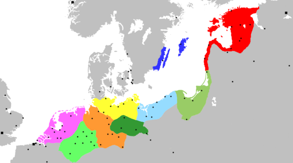 Сугубо прибрежными на картах заселения прибалтийских земель обозначают пруссов, куршей, ливов, эстов и водь; остальные же в этом определении являются «континентальными»[39].